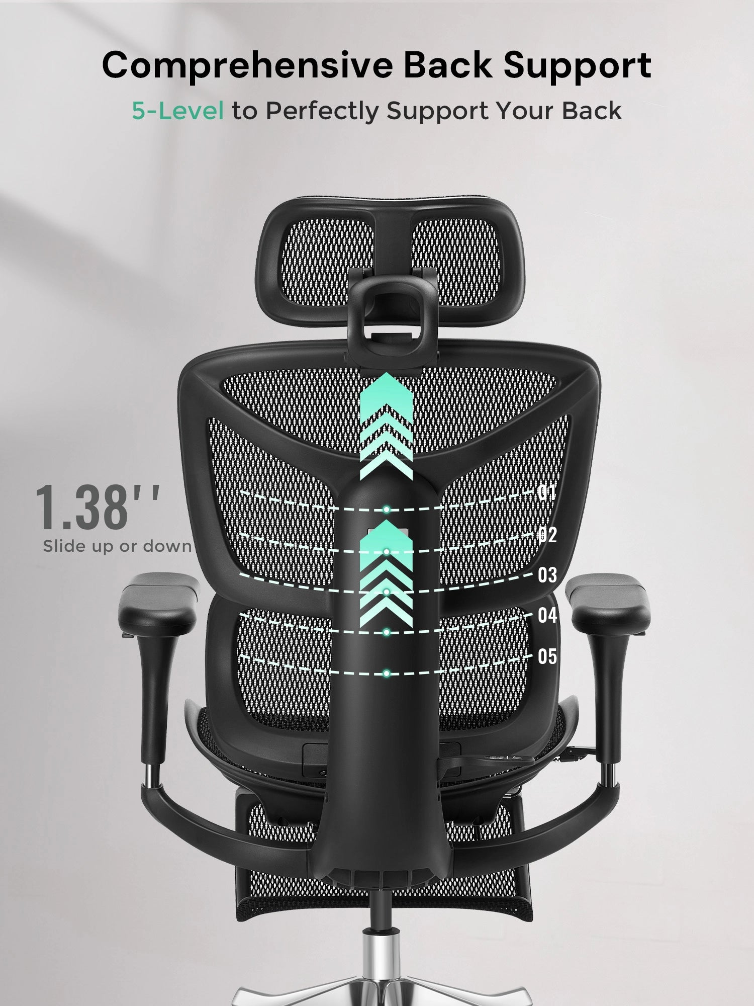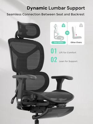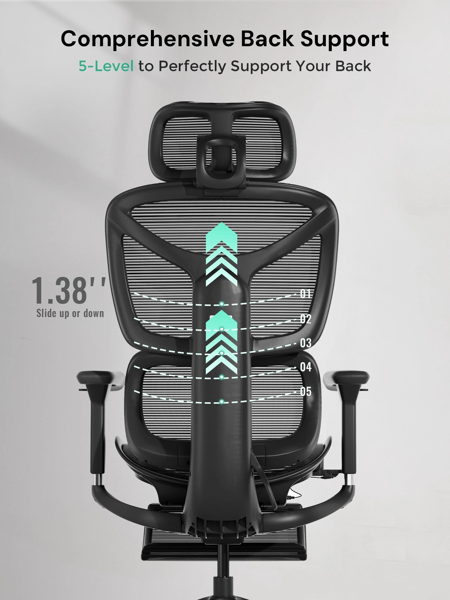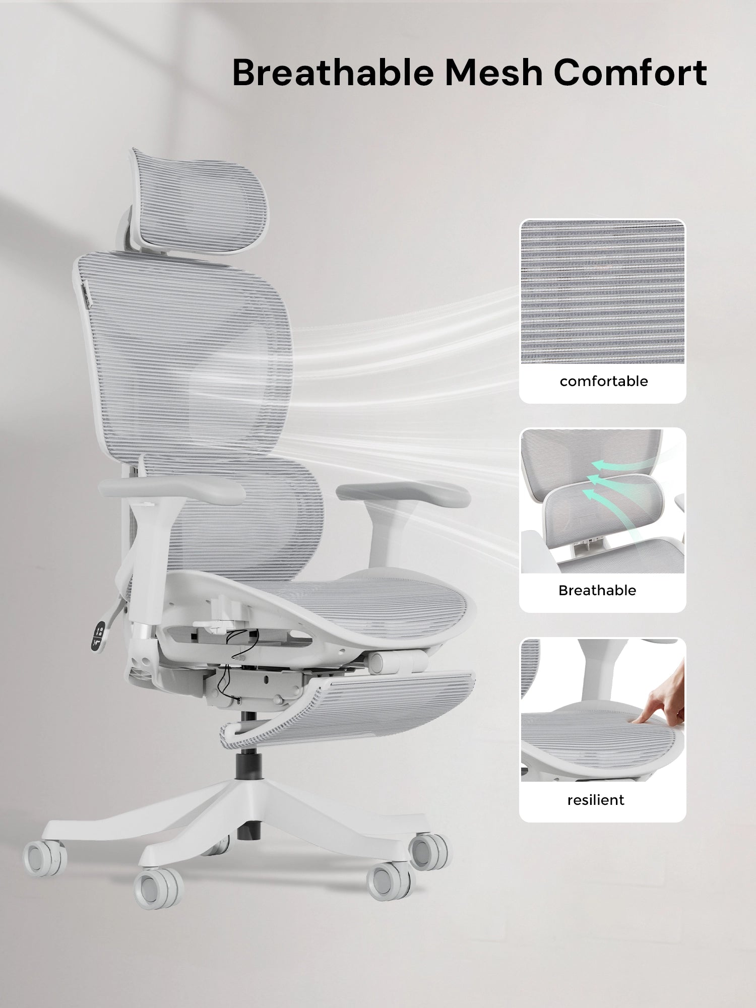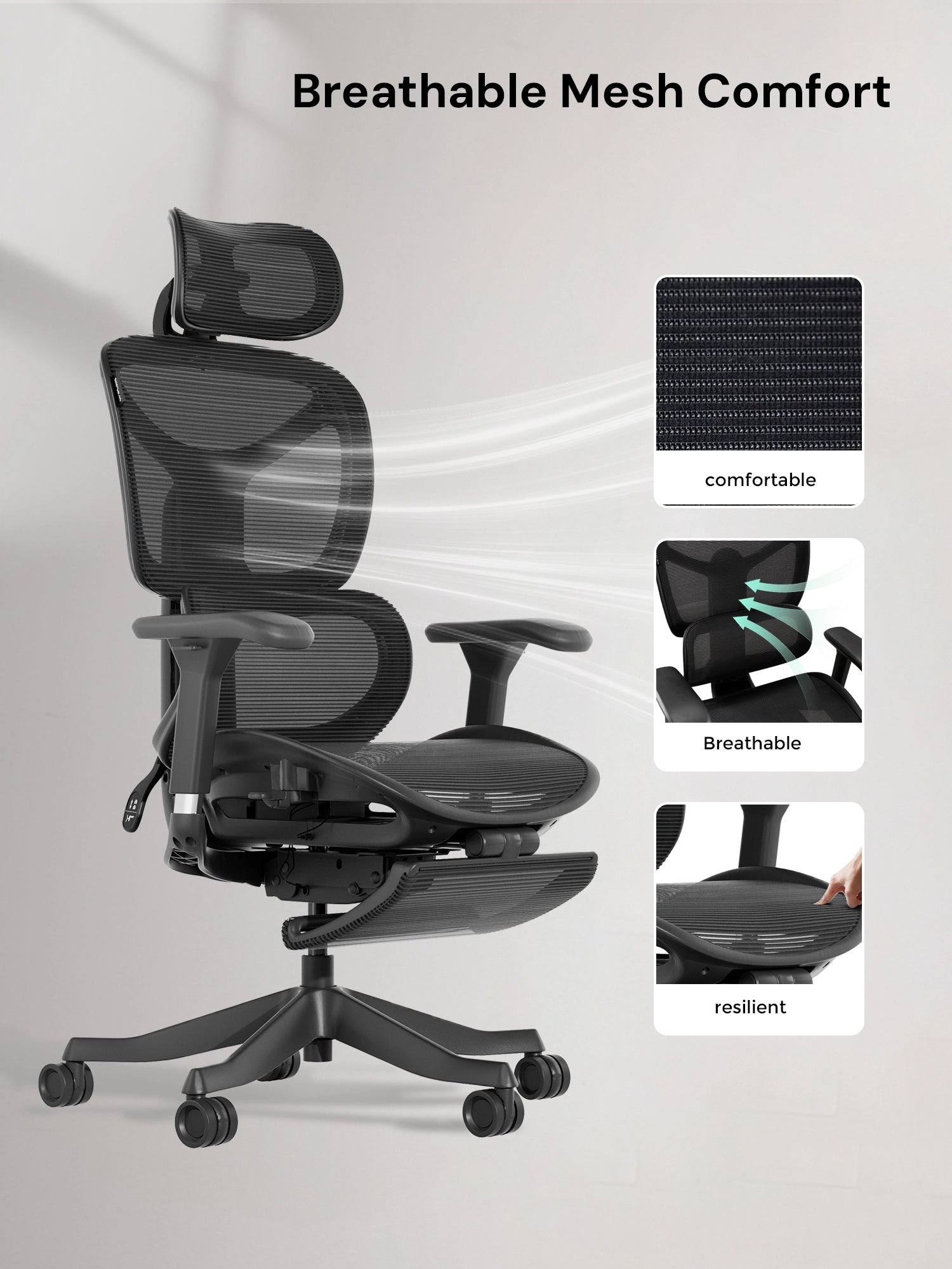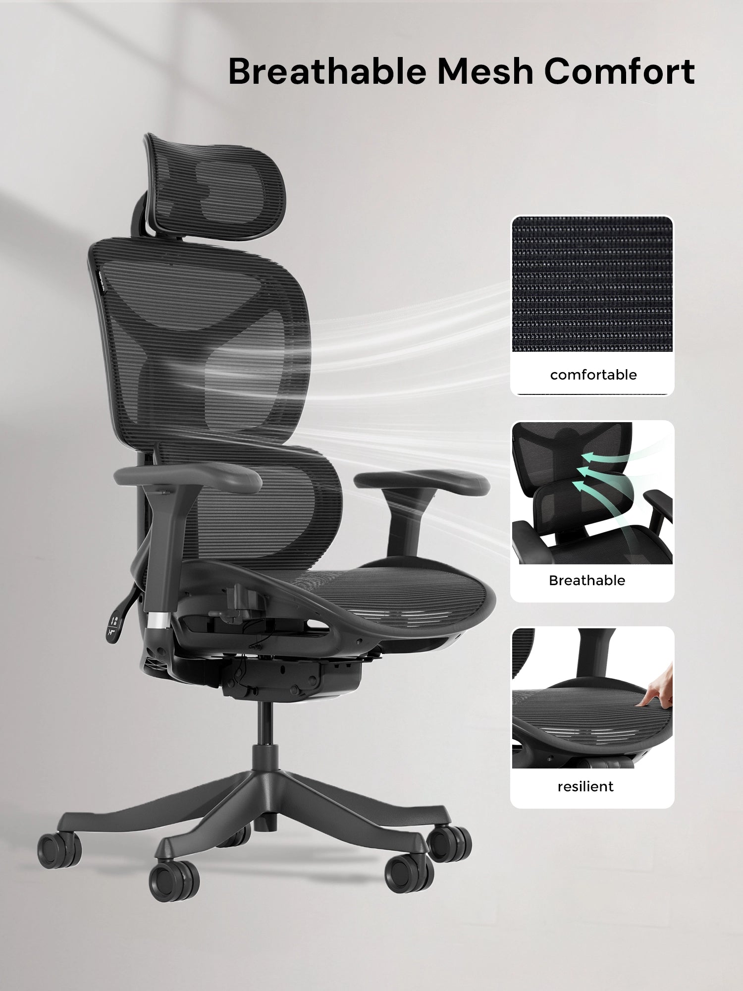 High-elastic breathable mesh provides firm yet comfortable support for long sitting hours. The reinforced frame ensures long-lasting durability and stability.