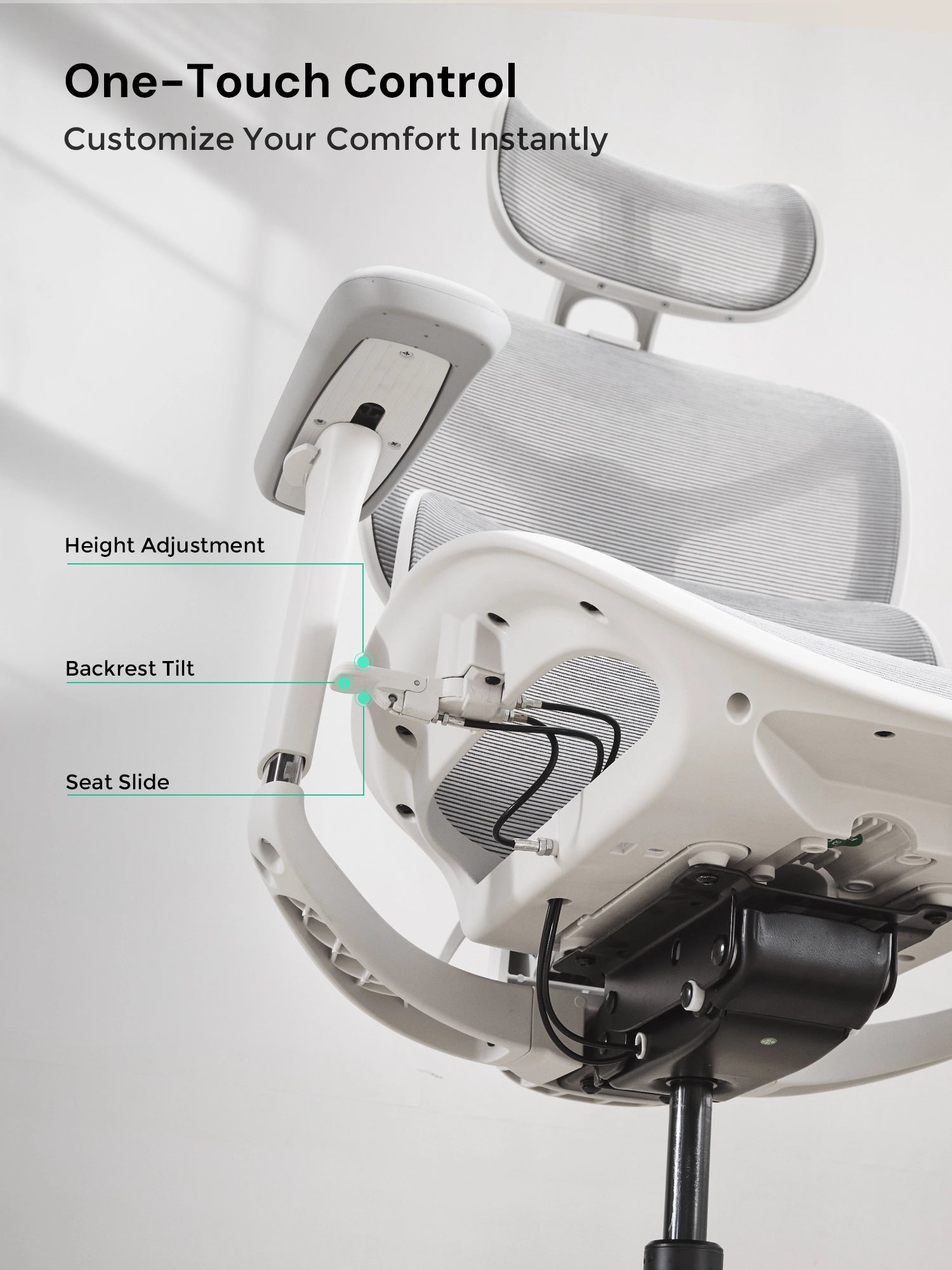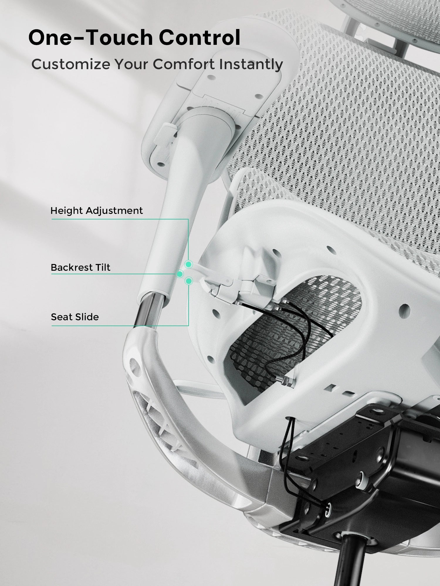 Adjust seat depth, tilt angle, and height with a single button. Seamlessly switch between work and relaxation without any complicated adjustments.