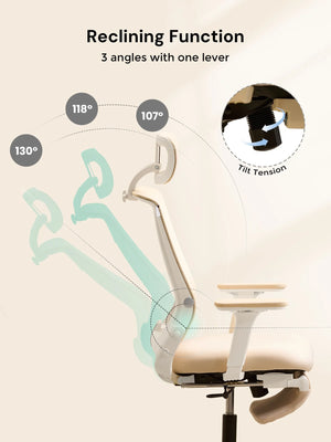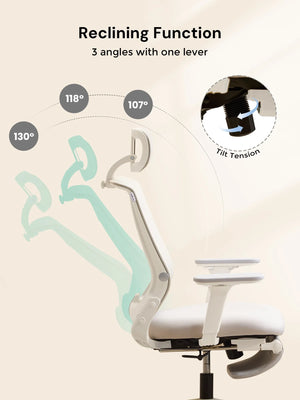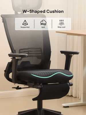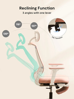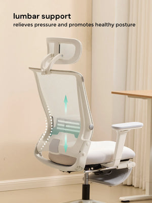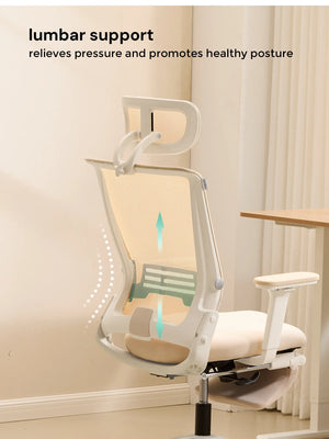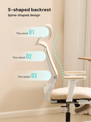 S-shaped backrest: follows the spine curve, supports the lower back, and reduces fatigue. Adjustable lumbar support: helps maintain healthy posture.
