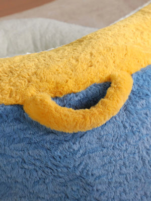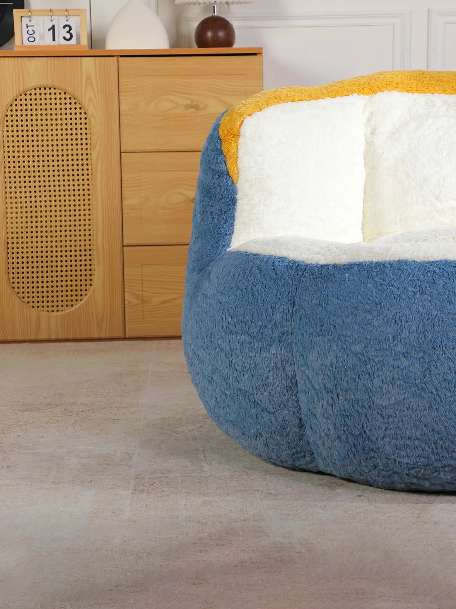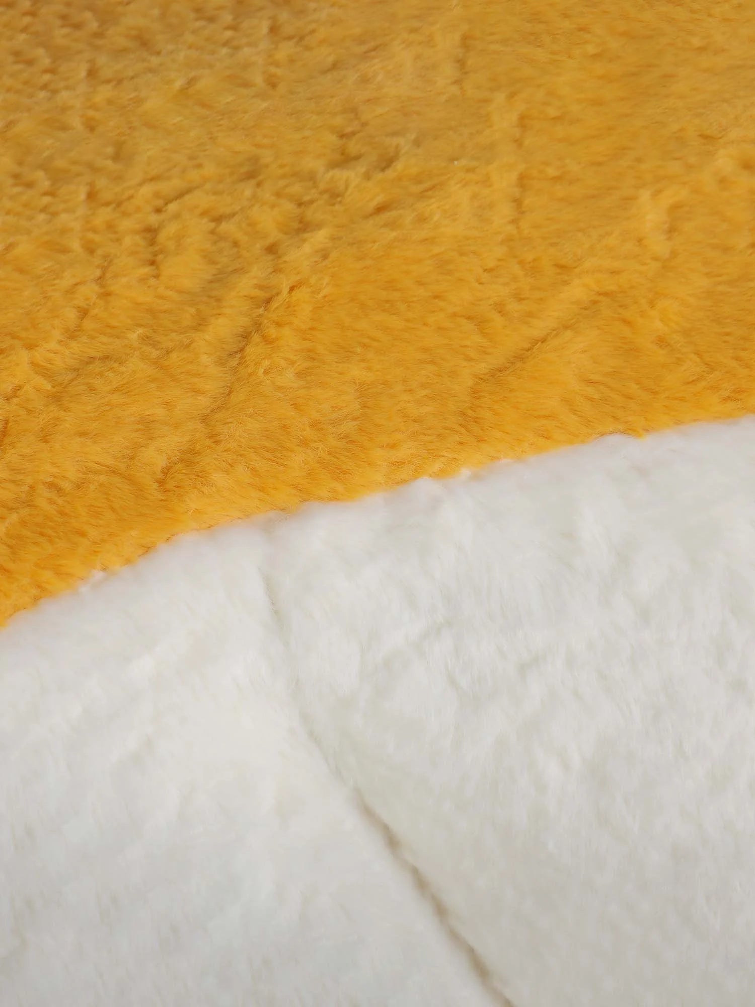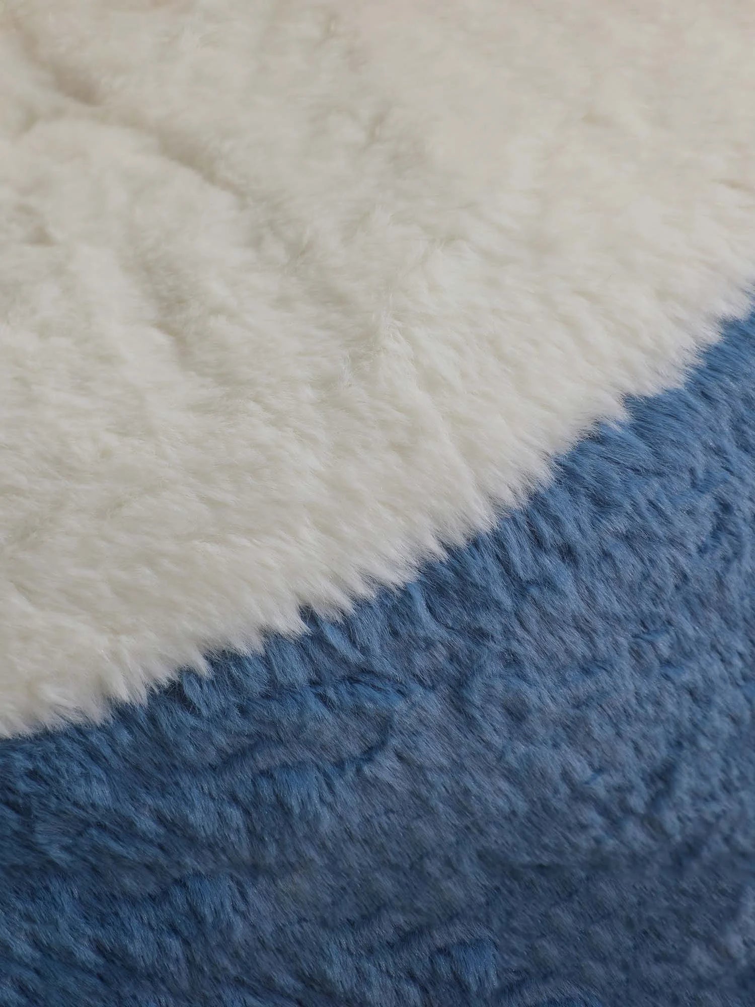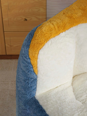 Crafted with ultra-soft faux fur in a bold blue, white, and yellow color combination, offering warmth, texture, and visual impact. -