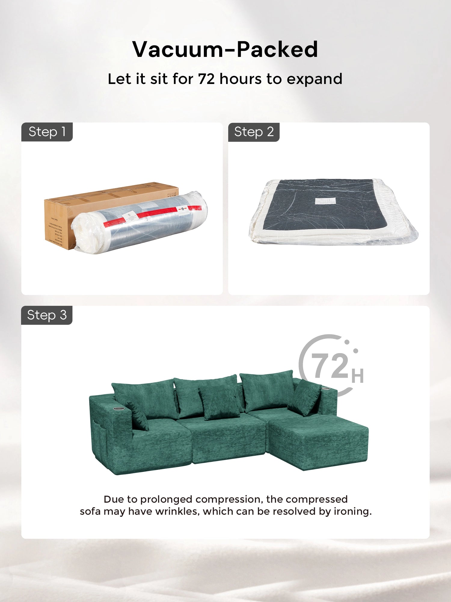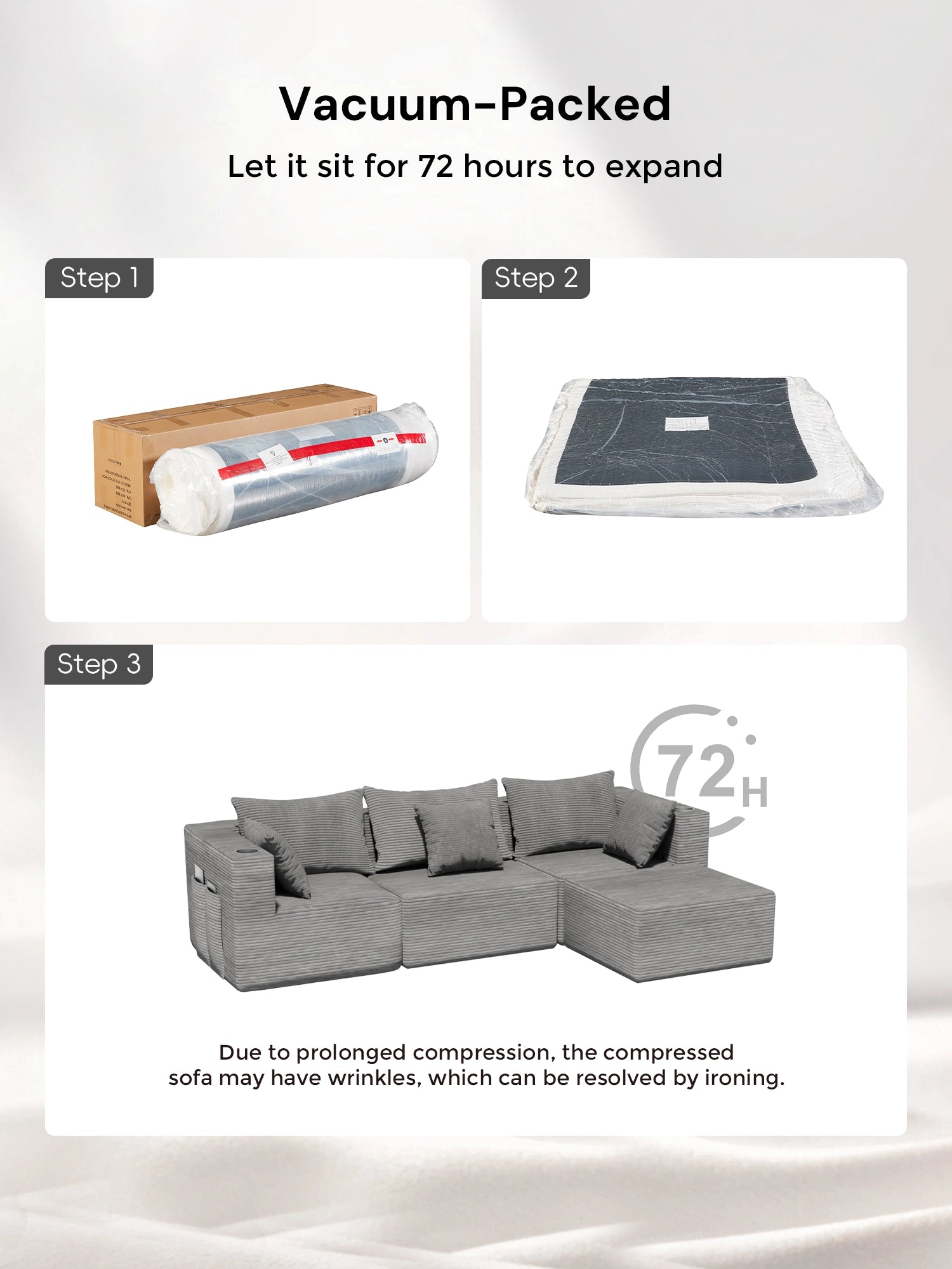 - The compressed sofa is not eligible for return or exchange after being unpacked.