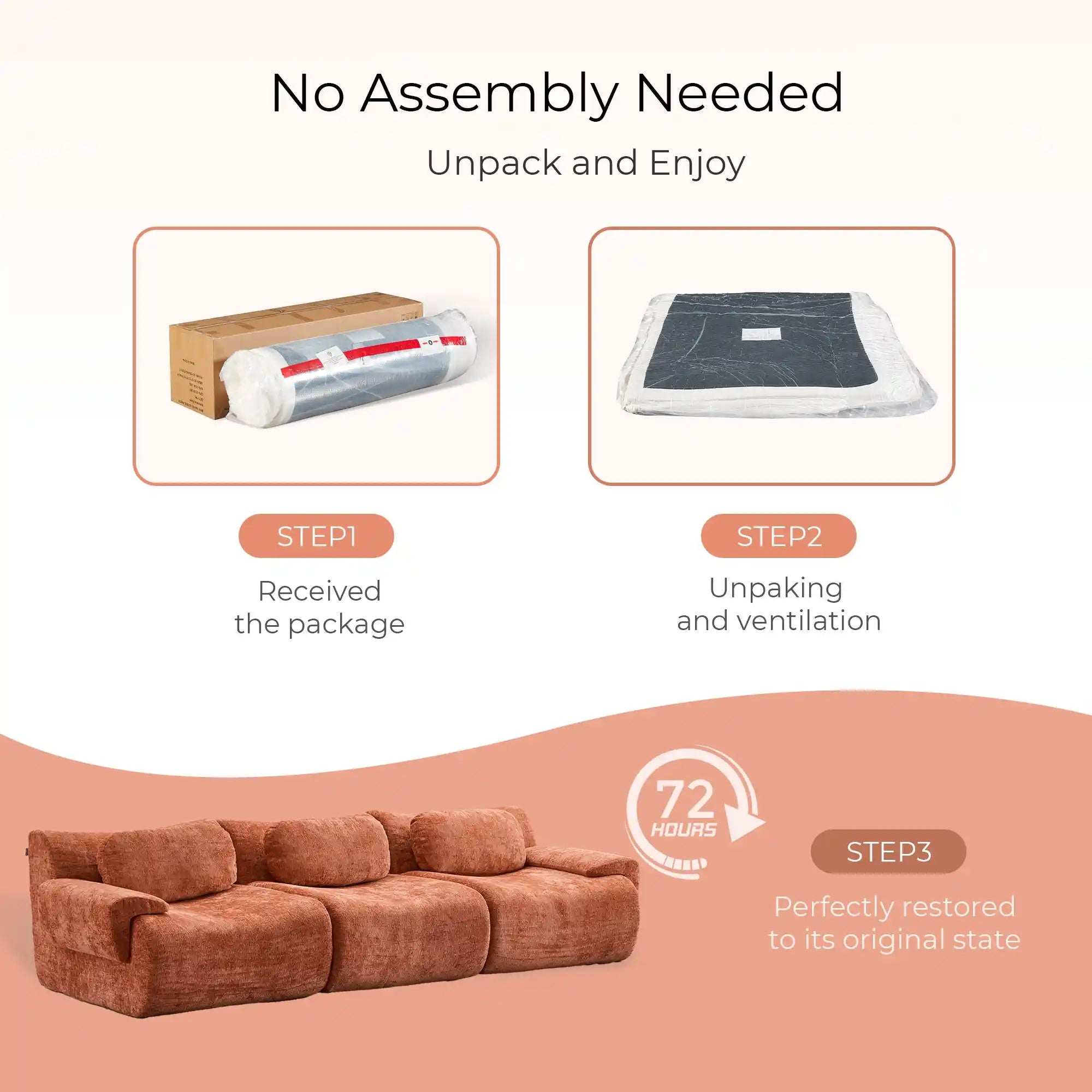 - The compressed sofa is not eligible for return or exchange after being unpacked.