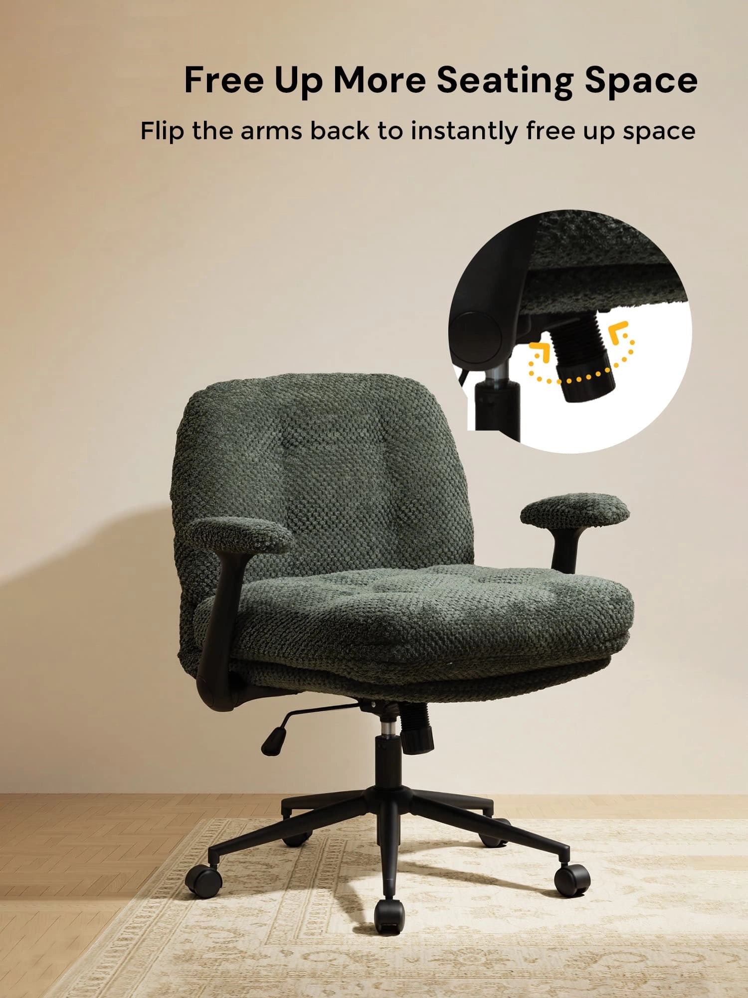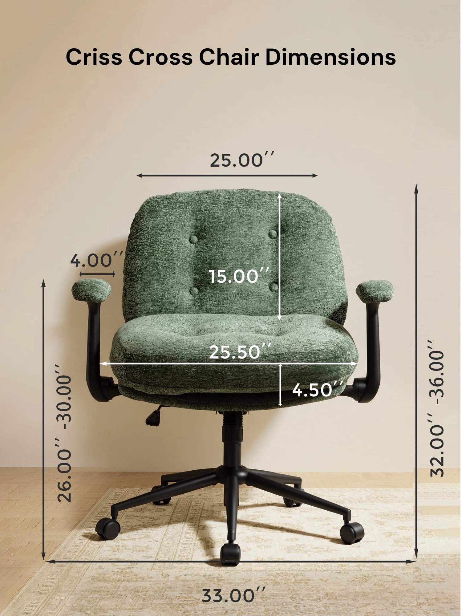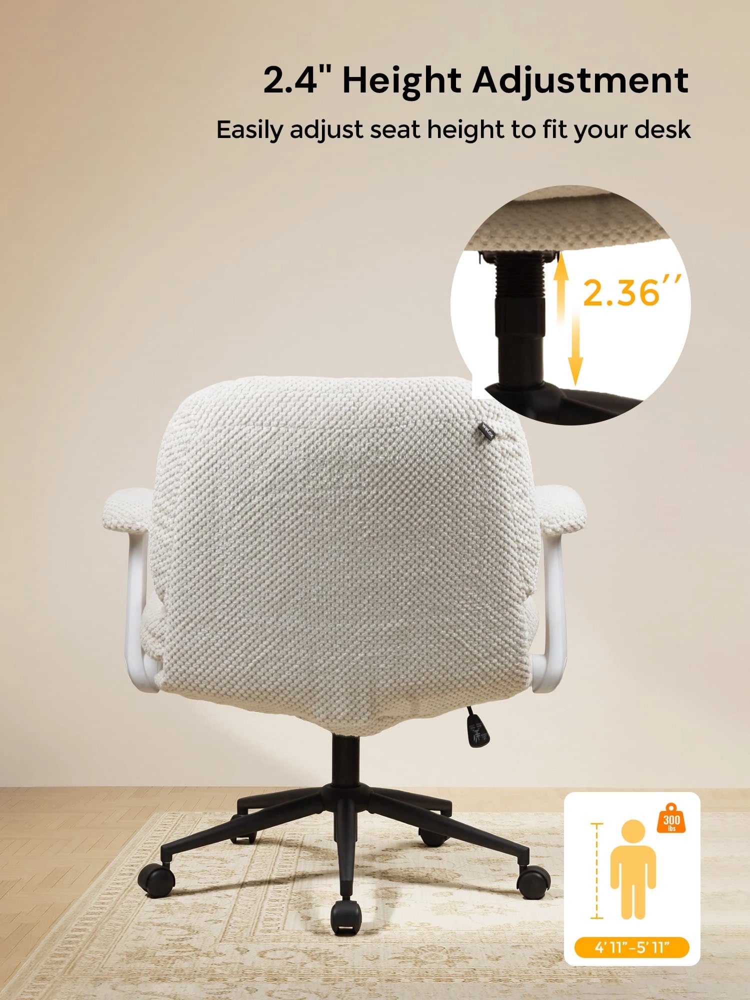 - Adjustable Height – Seat height adjusts by 3.74” to fit different needs and setups.