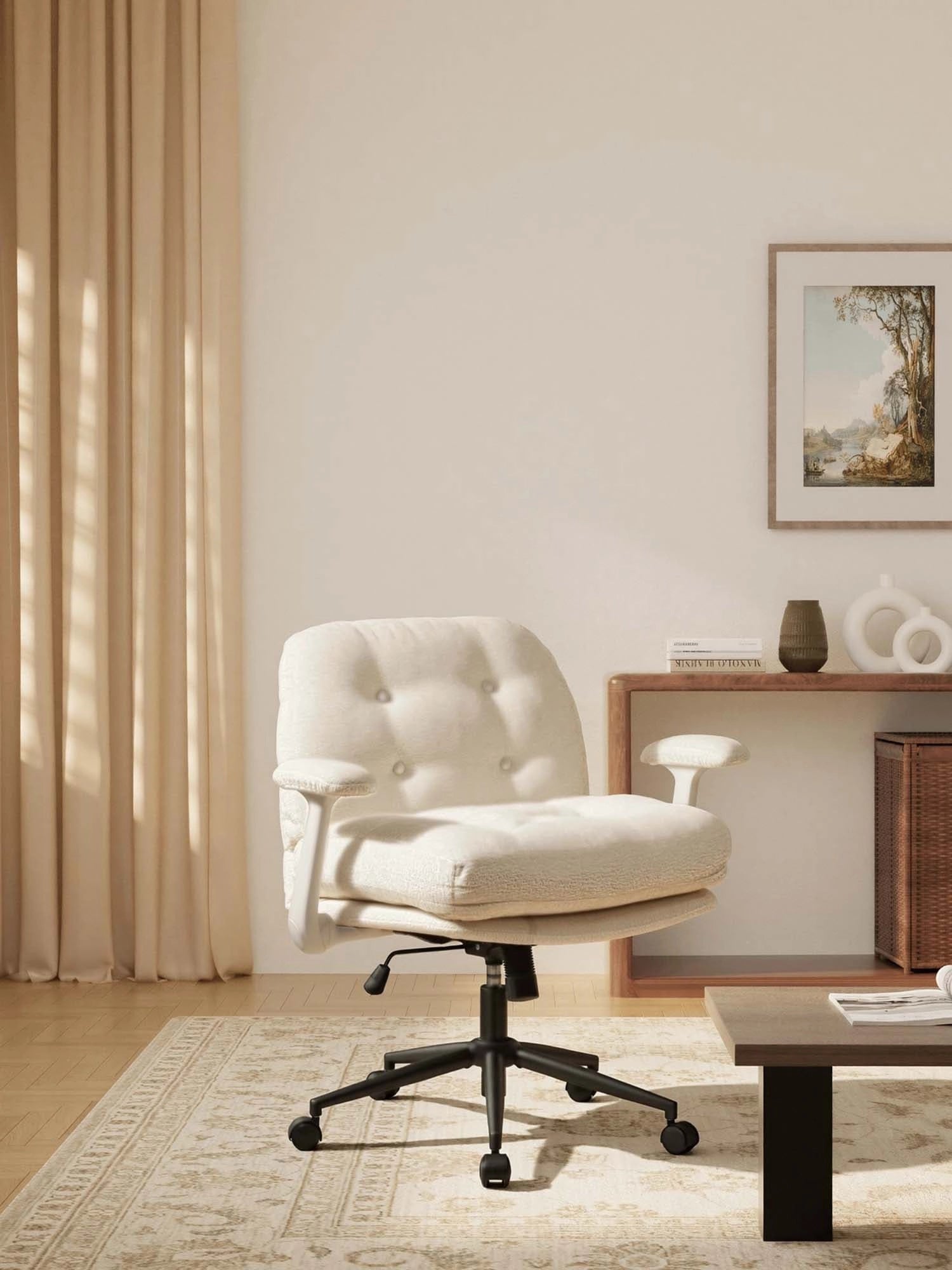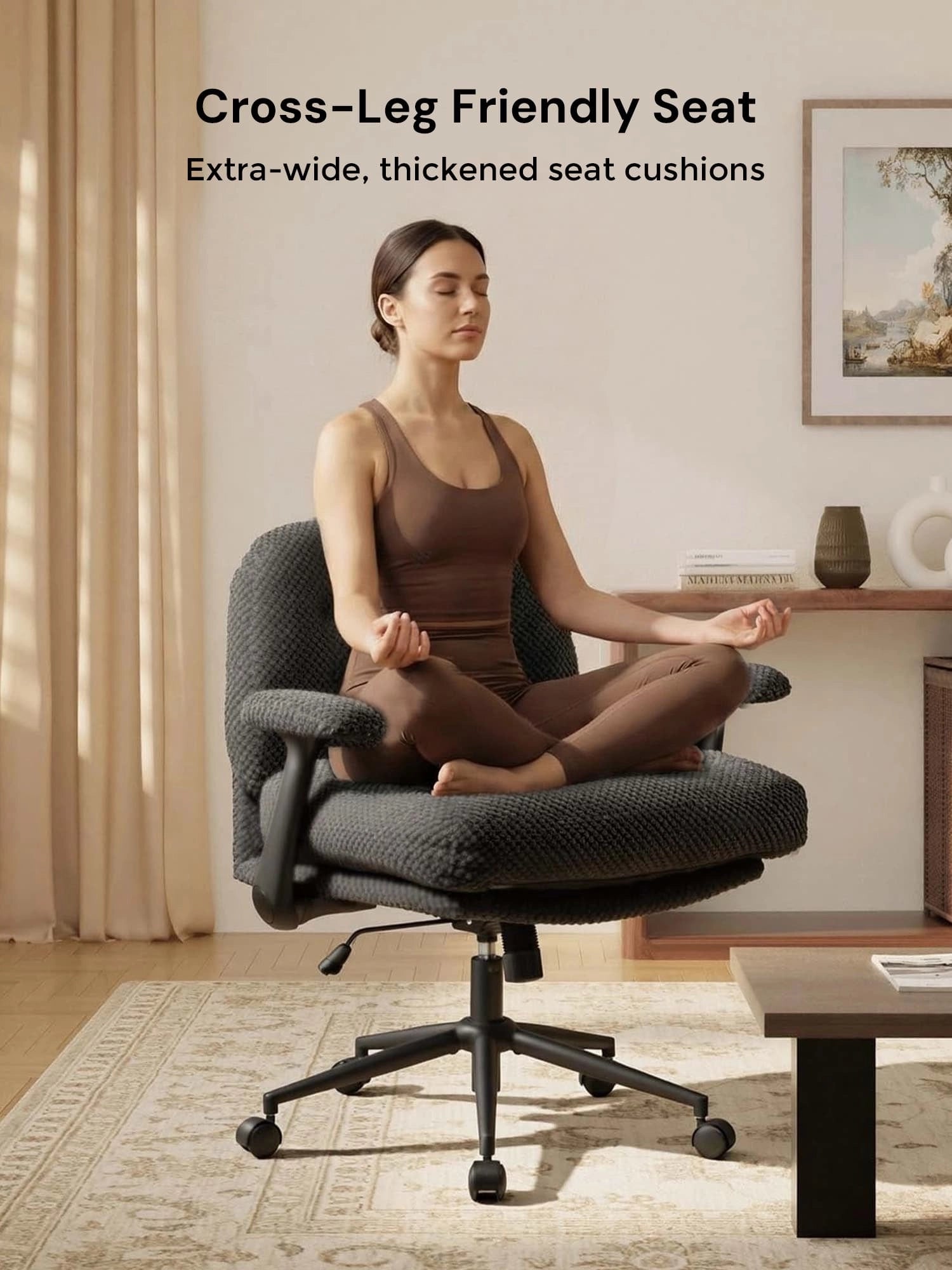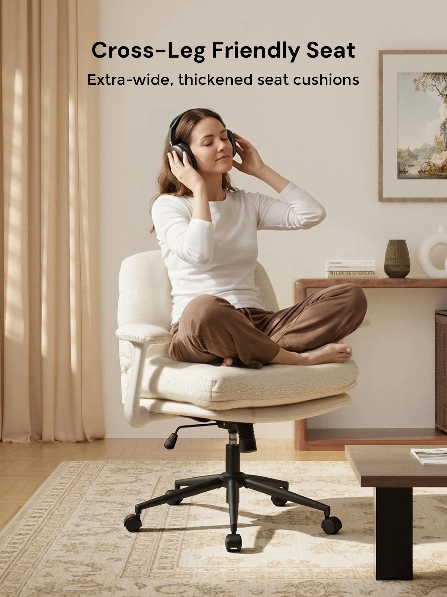 - Stable Metal Base – Black metal base with cross-leg design for enhanced stability and durability.