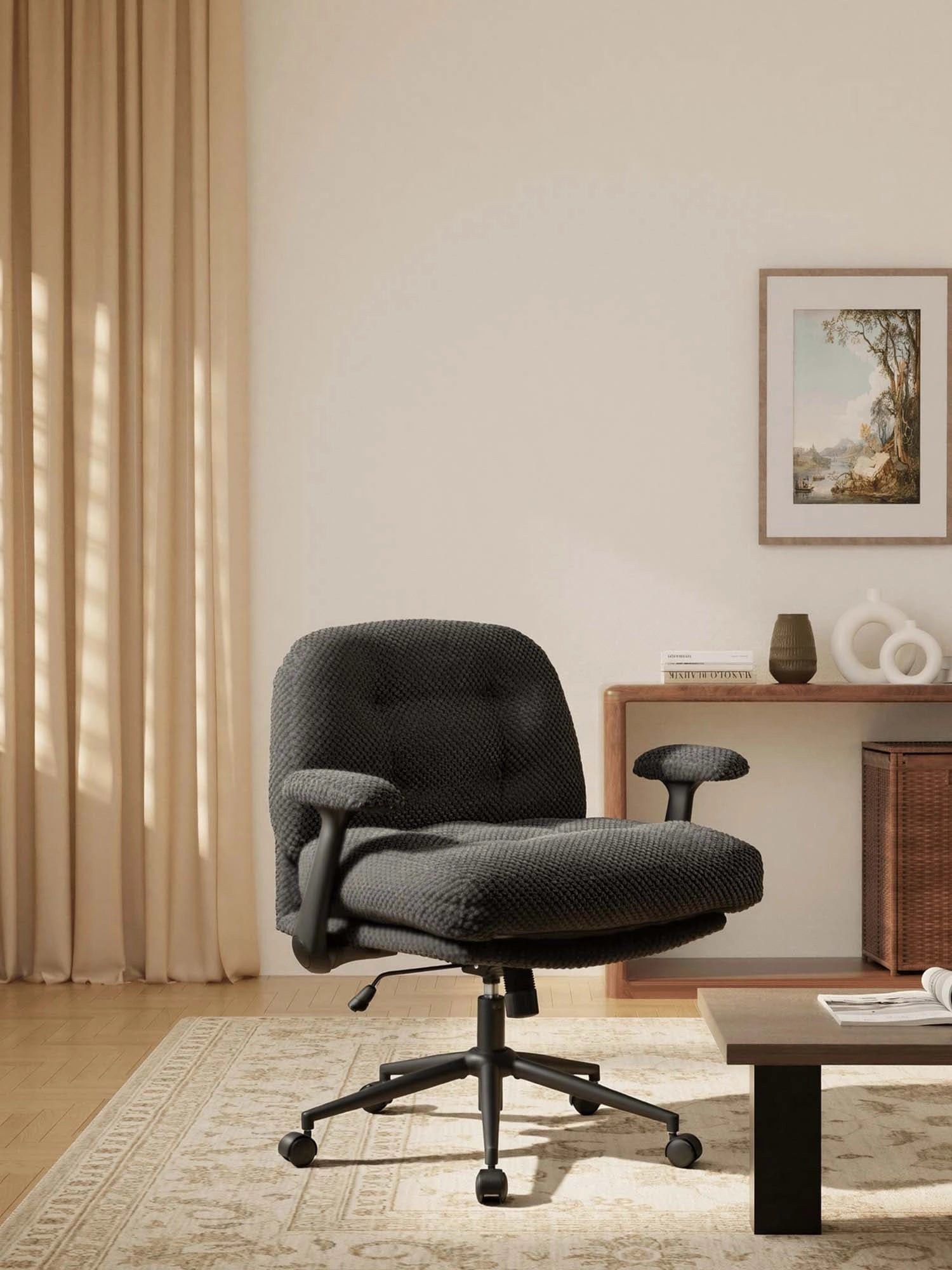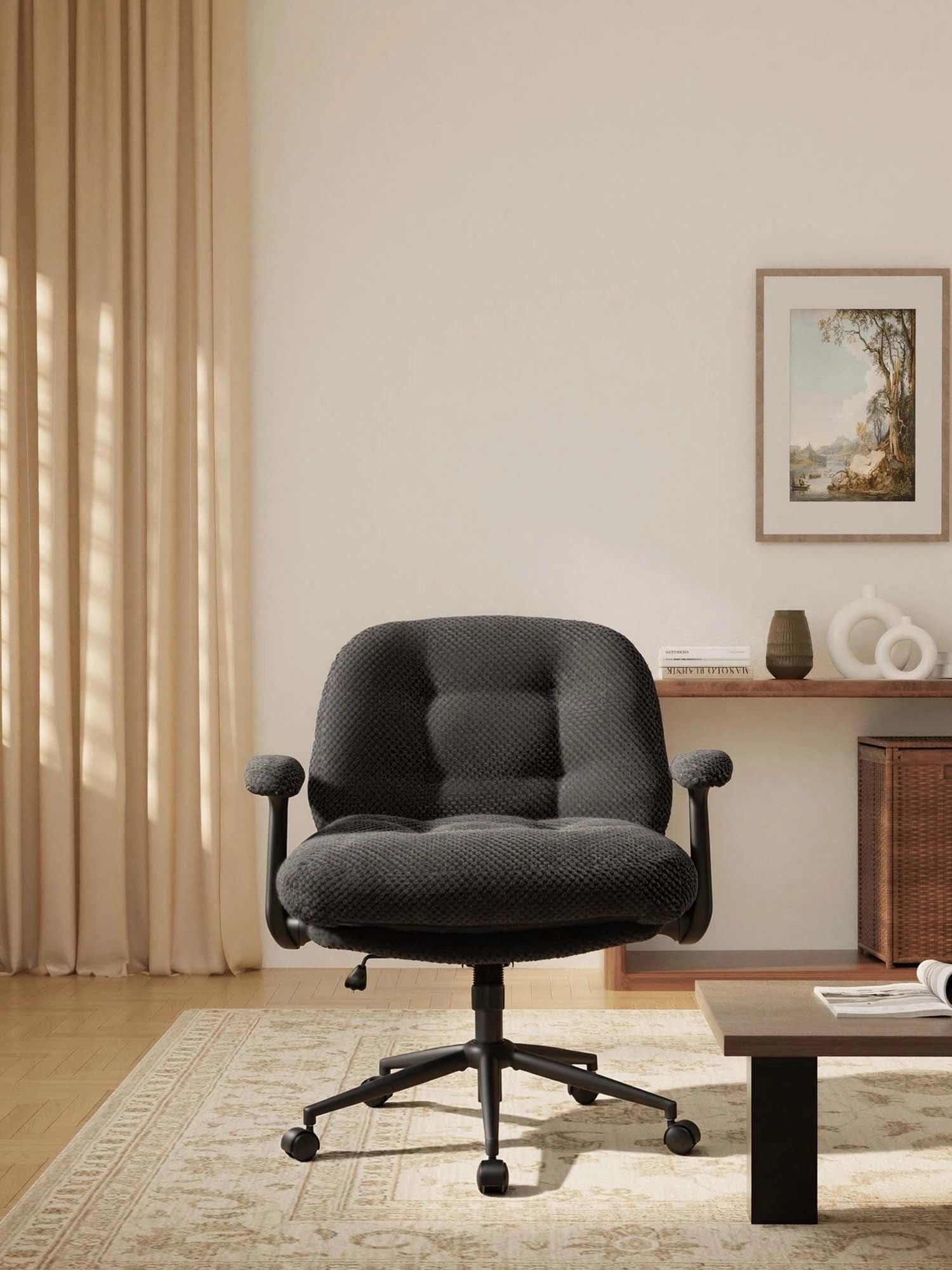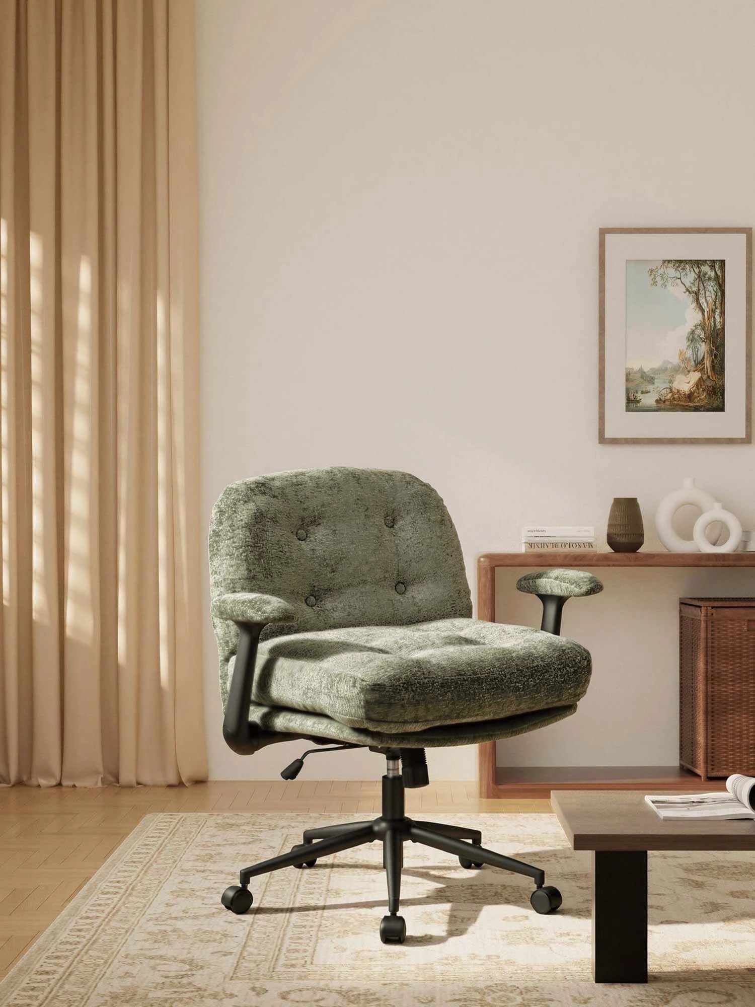 - Stable Metal Base – Black metal base with cross-leg design for enhanced stability and durability.