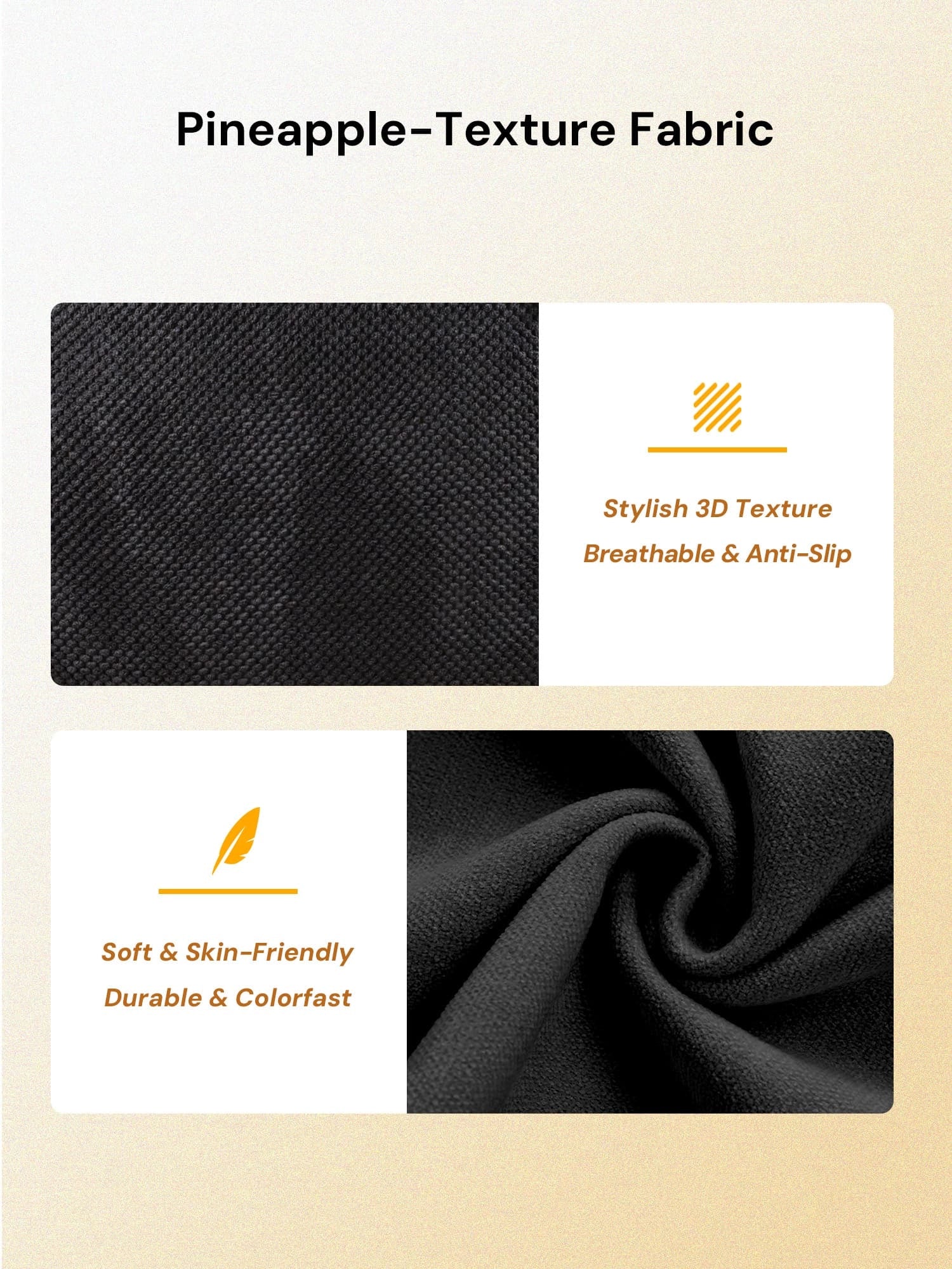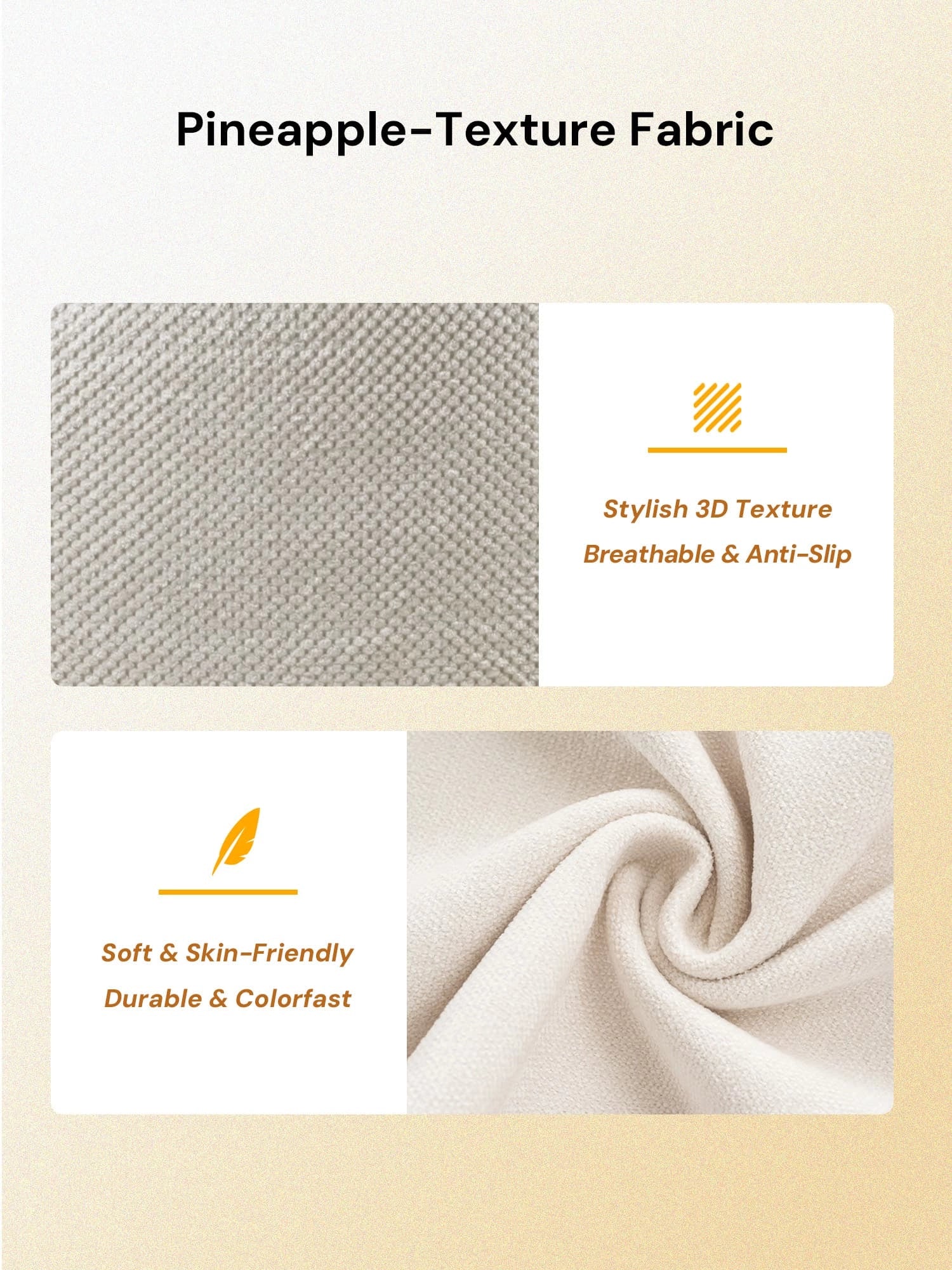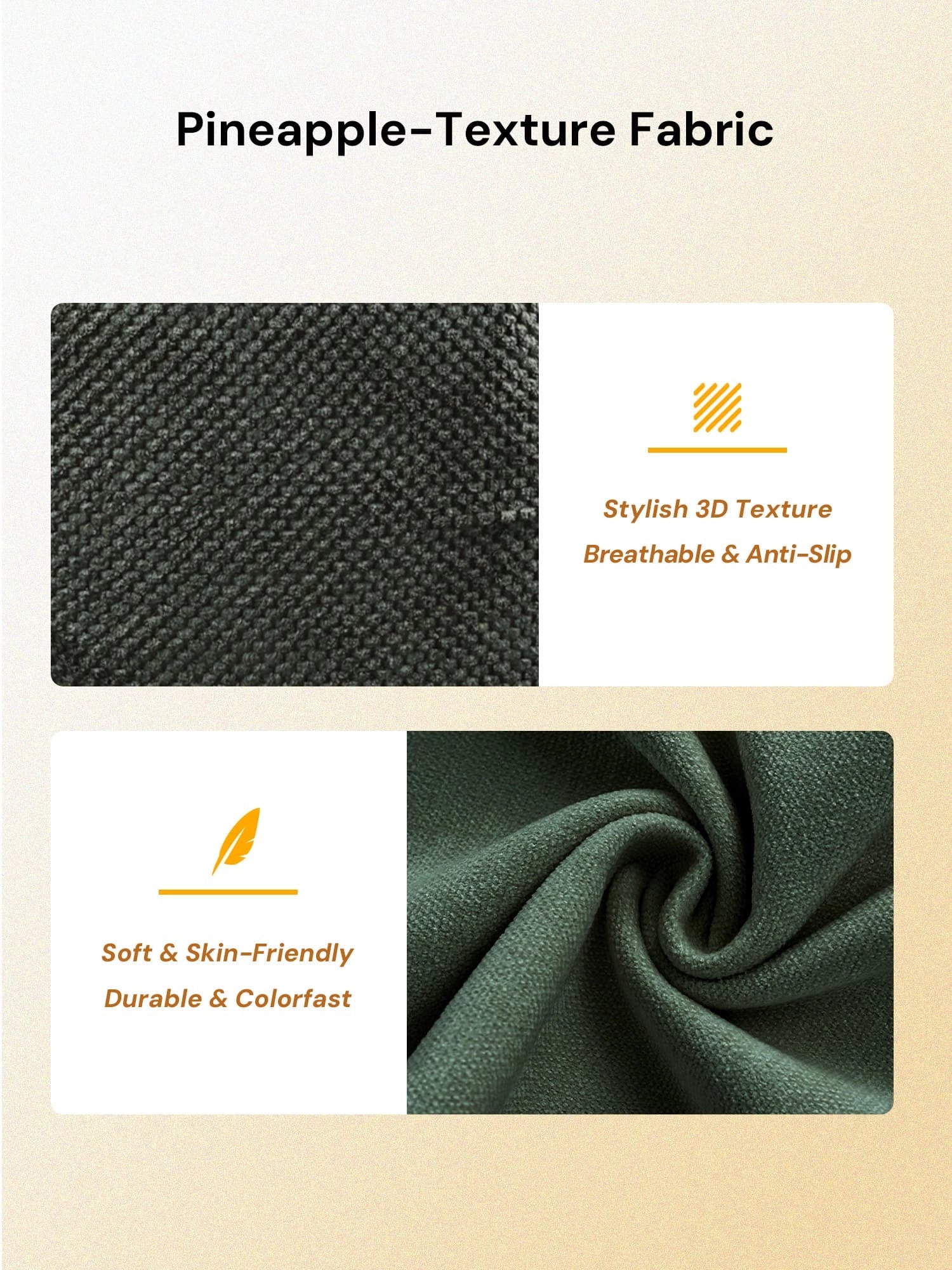 Premium Fabric Finish – Soft pineapple-textured and chenille upholstery with a refined, durable surface.
