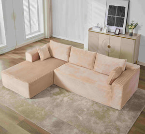Premium corduroy’s warm, tactile charm blends ergonomic support with exceptional wear resistance, maintaining pristine form through years of use.Left-side Chaise Longue